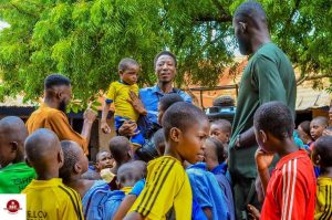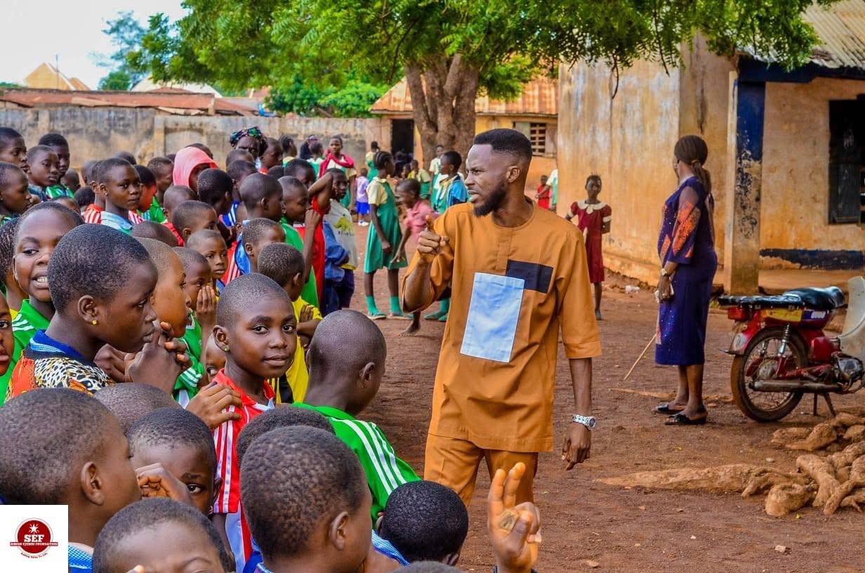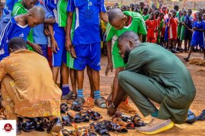 In a heartwarming show of compassion and community service, Benue-born young entrepreneur, philanthropist, and spoken word activist, Simon Bright Ejembi,yesterday , visited Army Children School in Otukpo to distribute school sandals to vulnerable pupils.