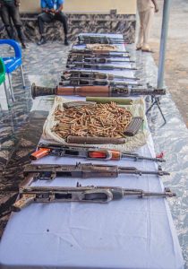In a swift follow-up clearance operation, the operatives stormed Abinsi town and successfully apprehended Jacob Adikwu on 16th July 2025 and recovered three (3) AK-47 rifles, 220 rounds of live ammunition and a volkswagen car from his hideout. Further investigation carried out by the operatives on the 17th July 2025, led to the recovery of additional five (5) AK-47 rifles, one rocket launcher, and 1000 rounds of live ammunition from the same arms dealer.