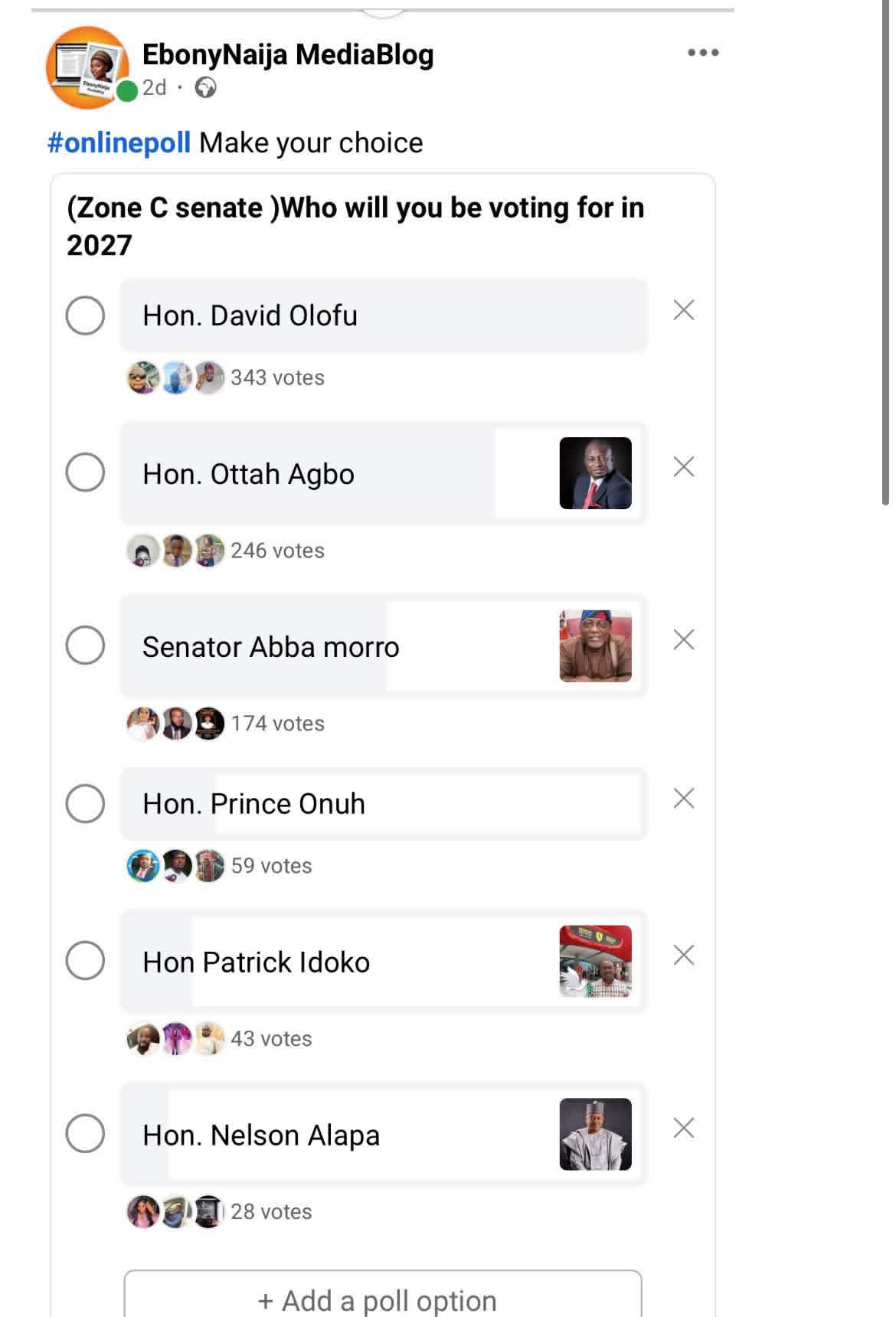The recent Senatorial opinion poll by a popular Online Blog, known as EbonyNaija MediaBlog, indicated that the grassroots of the 9 LGAs of Benue South, supports the aspiration of Hon. David Olofu PhD, who hails from the Apa Agatu Federal Constituency, as the favorite for the Senate come 2027!