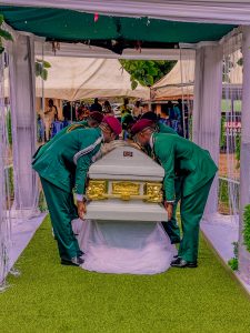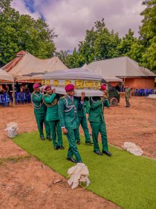 Speaking during the burial, mourners eulogized Major Agada as a man of honour who lived a life of impact and commitment both in and out of uniform.