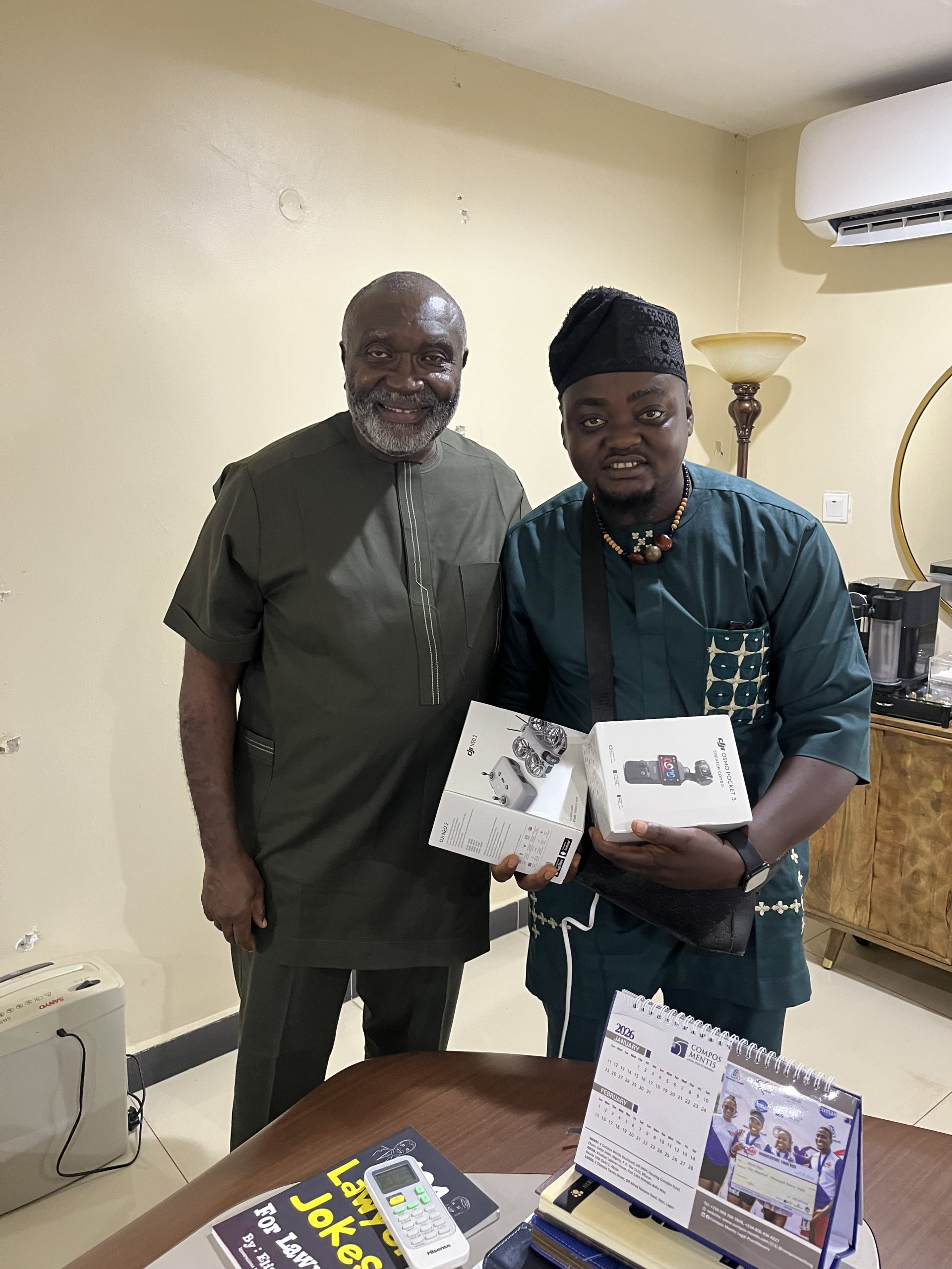 In a remarkable show of support and encouragement, renowned legal practitioner Barrister Godwin Obla (SAN) has gifted Ebonynaija MediaBlog with valuable media equipment, including a Drone Camera and an Osmo Pocket Creator Combo, worth millions of naira.